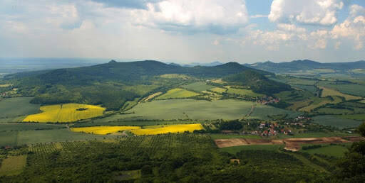 Dum Zichovec is gelegen tussen de glooiende heuvels, landerijen en bossen