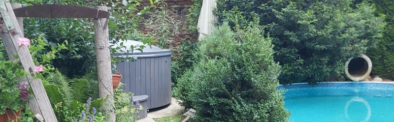 Voor een verfrissende afkoeling is er een zwembad van 5 meter doorsnede en 120 cm diep, ideaal om even te ontspannen.